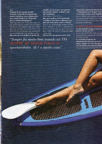 O facto de ter estado ‘dentro de um jornal’, levou a atriz a ver de um modo diferente a imprensa: “Ser directora, por um dia, de uma revista que tanta mentira já escreveu sobre mim. Porquê?! Porque a maturidade nos traz destas coisas, ter jogo de cintura. Há oito anos atrás seria impensável para mim aceitar este desafio, aliás, acho que no momento que o fizessem levavam logo com um palavrão. Hoje sou uma mulher diferente. Com consciência de que a profissão que escolhi não pode estar de costas voltadas para a imprensa, mas sim de mãos dadas.