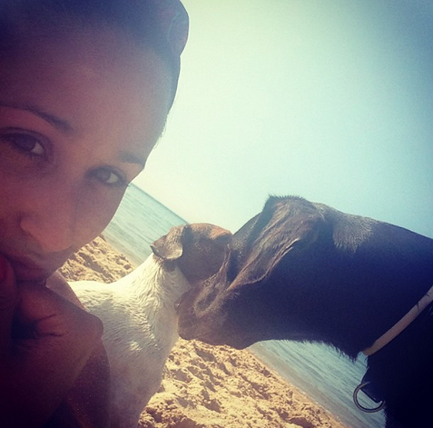 I think love is in the air... #dogs#dogsinlove#beach#dogatthebeach#sea#girl#bikini#tangirl#atentardescansarmasosapaixonadosnaodeixam