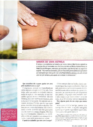 Sou muito simples a esse nível. Não ando muito maquilhada todos os dias, ponho rímel e blush e estou pronta para sair. Desmaquilho-me sempre e uso cremes de dia e de noite. Gosto de descobrir novos cremes e sou viciada em batons! Além disso, tenho muitos cuidados com o meu cabelo, uso bons champôs, amaciadores e máscaras. Mas não sou obcecada com isso.